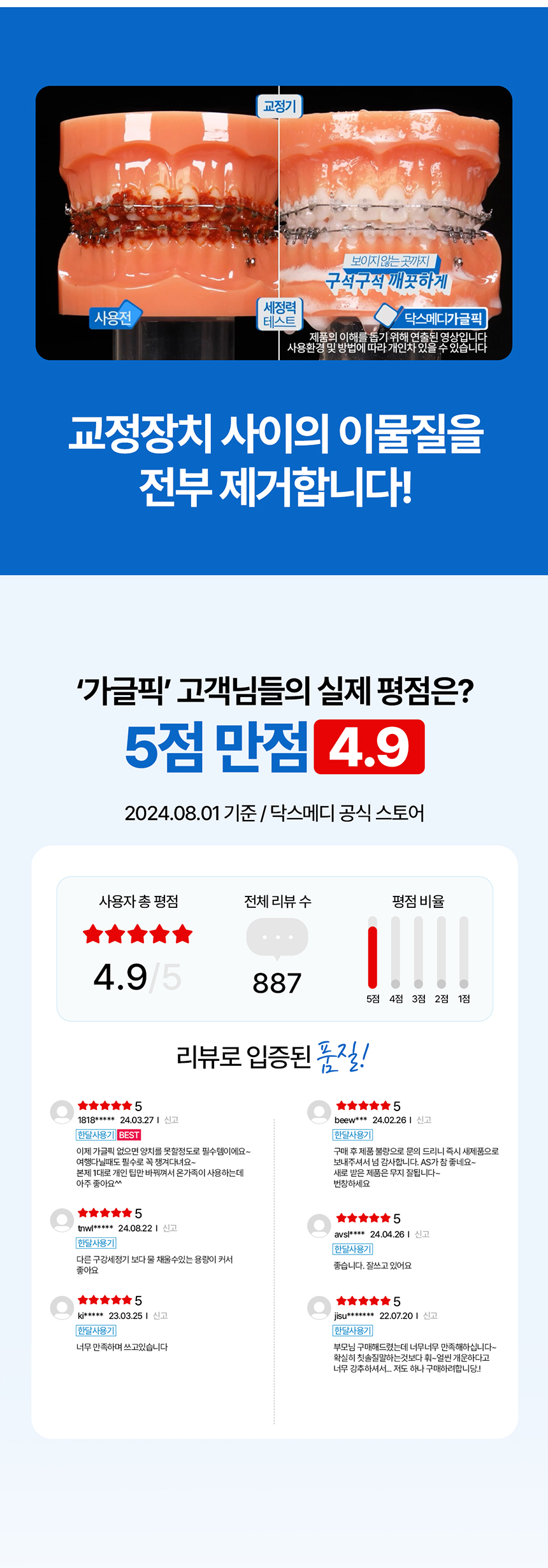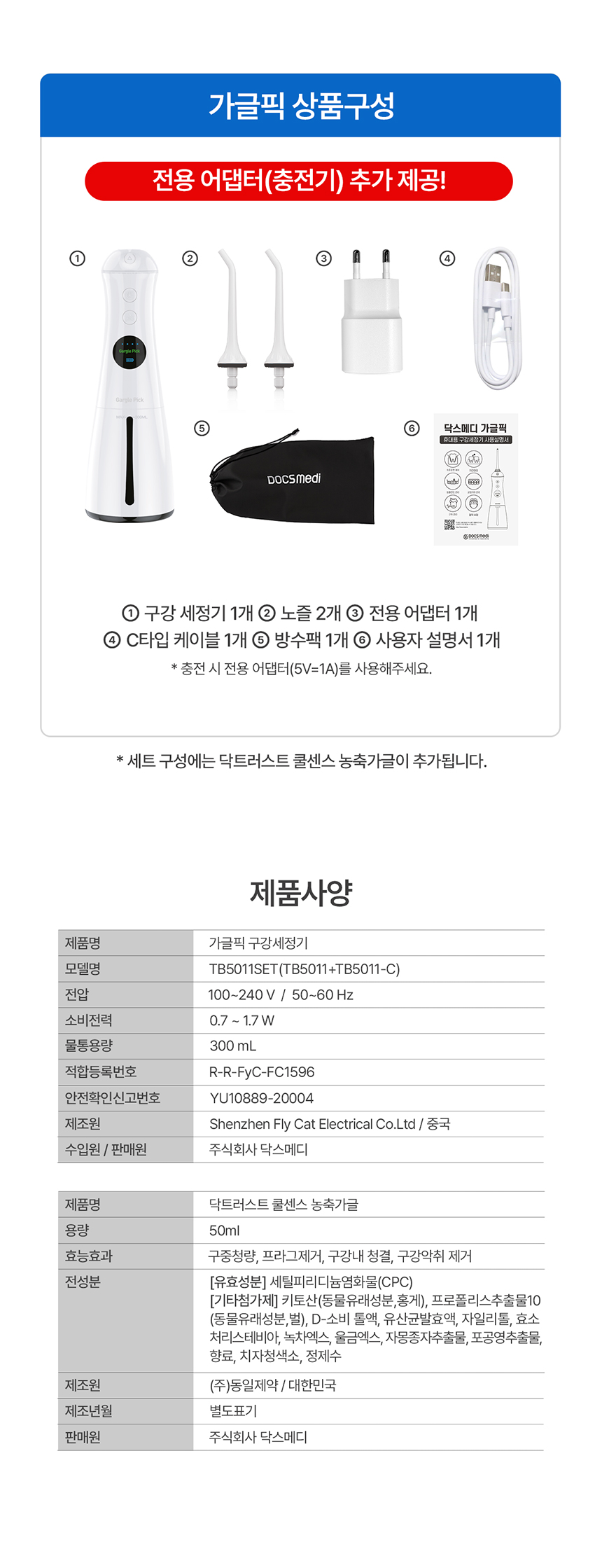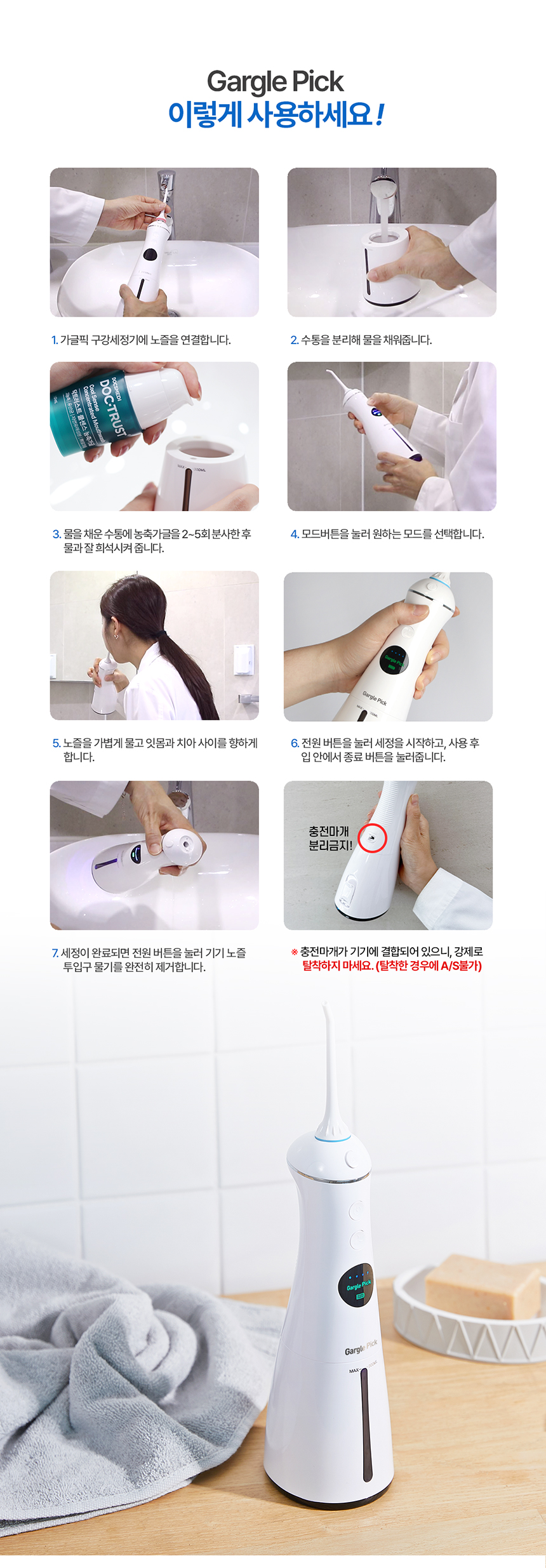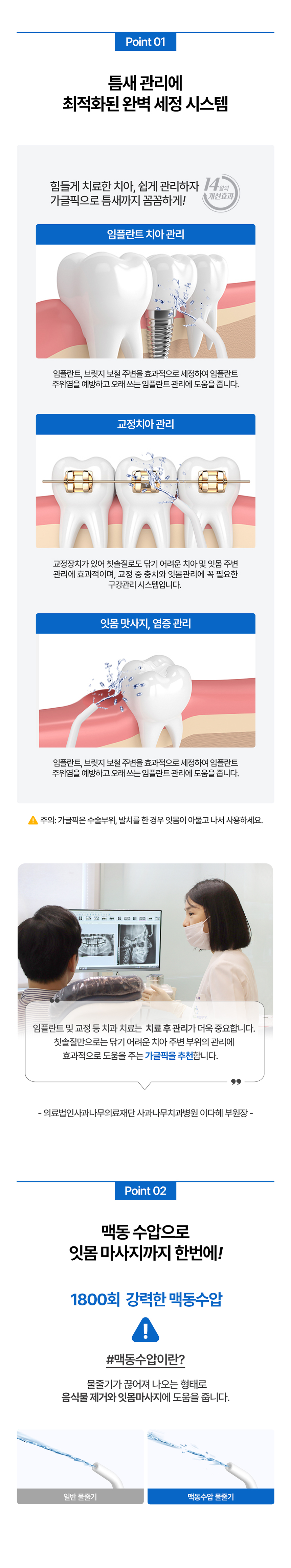 | 제품설명 | 치아 사이사이, 치주 포켓 사이사이, 잇몸 사이사이 물줄기로 쏴아~ 닦아주는 구강 세정기. | |