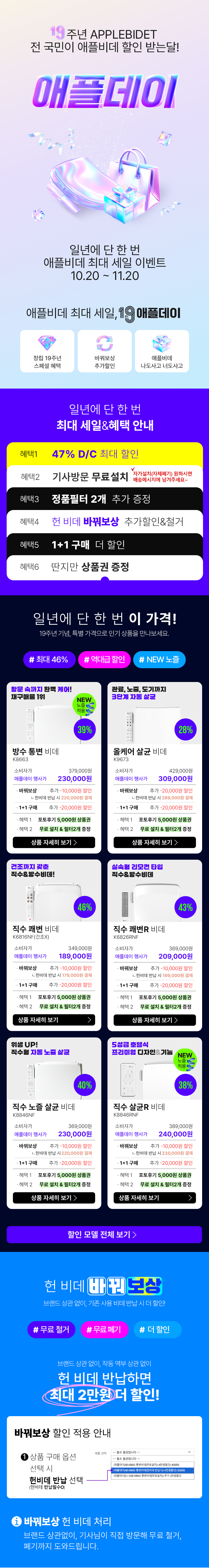 - ● 애플비데는 고객만족 서비스 제공을 위해 전문 기사님이 직접 방문하여 배송&설치를 진행합니다. (출고 후 3~5일 소요)