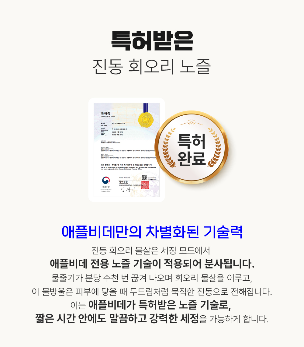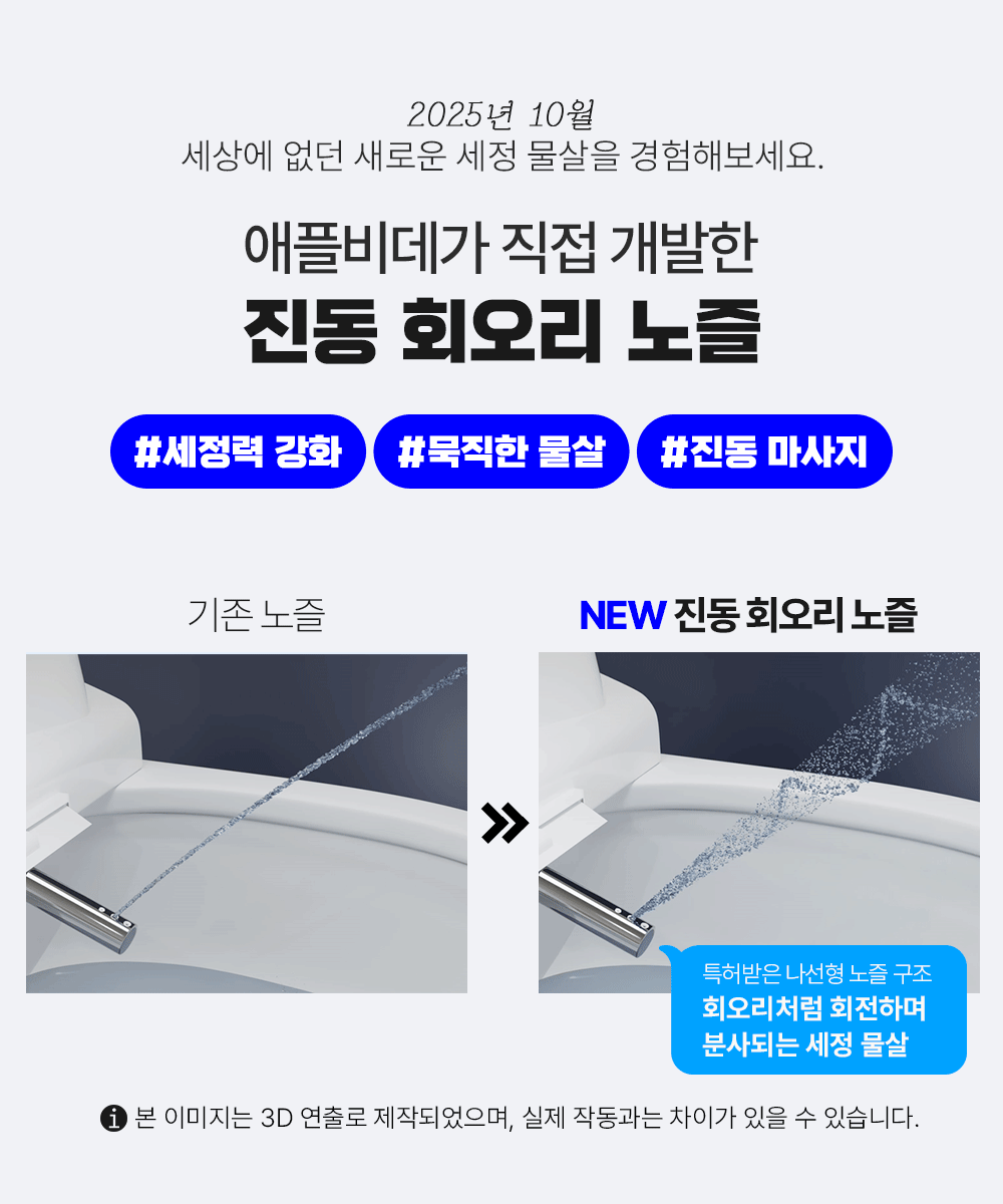 APPLE-6680에 적용된 통변 모드는 단순 세정해 주는 것이 아니라 통변 전용 펌프와 노즐을 이용해 부드러우면서도 묵직한 물줄기가 강하게 쭉 나와 시원함에 도움을 주는 기능이다.