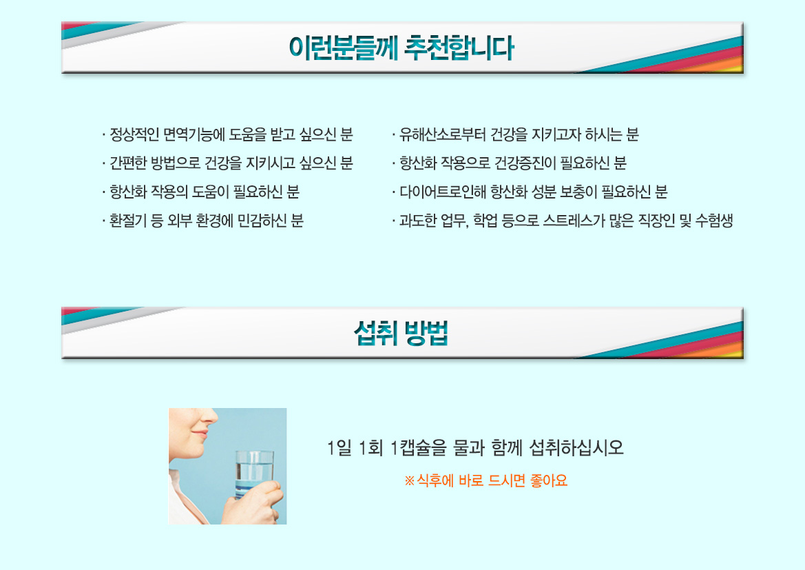 본 상품은 건강기능식품으로 등록되어 있어 심의 받은 내용만을 게시할 수 있다고 한다. 하여, 하고 싶은 말이 참 많지만 부득이하게 업체가 제공한 (심의를 거친) 상세 내용을 올려놓았으니 양해 부탁드린다.