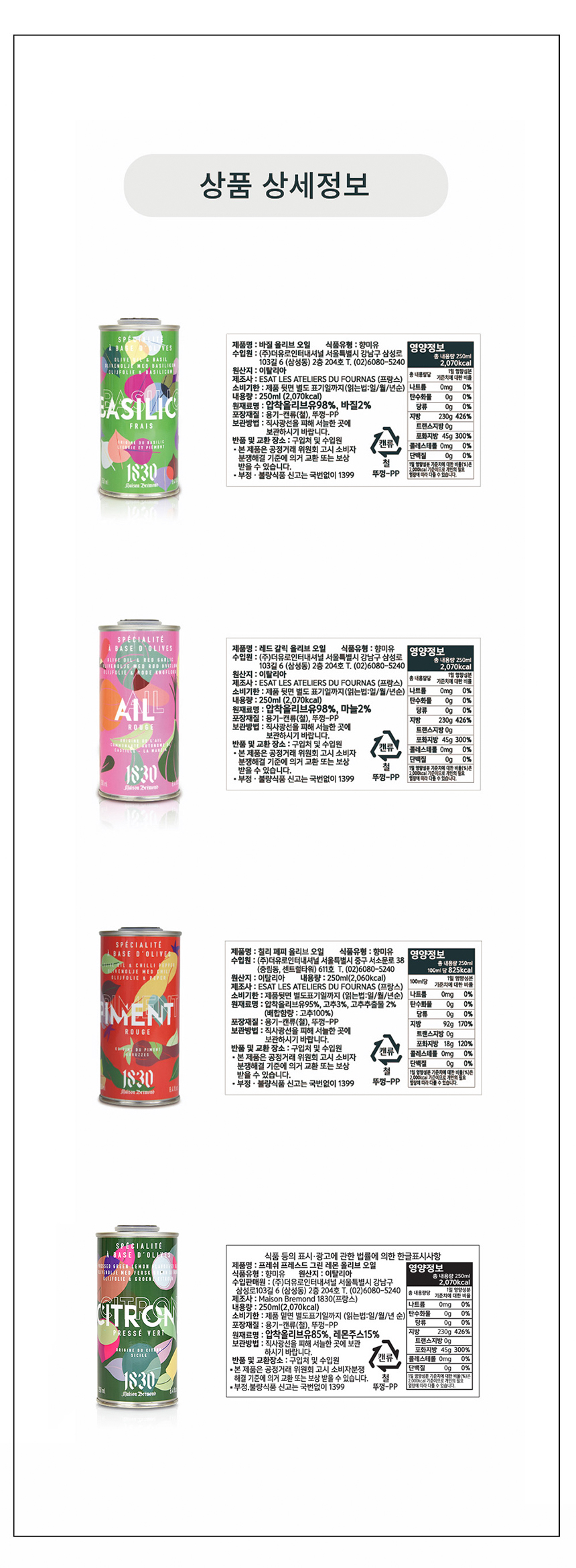 문의주신 엑스트라버진올리브오일 4가지맛 유통기한입니다.