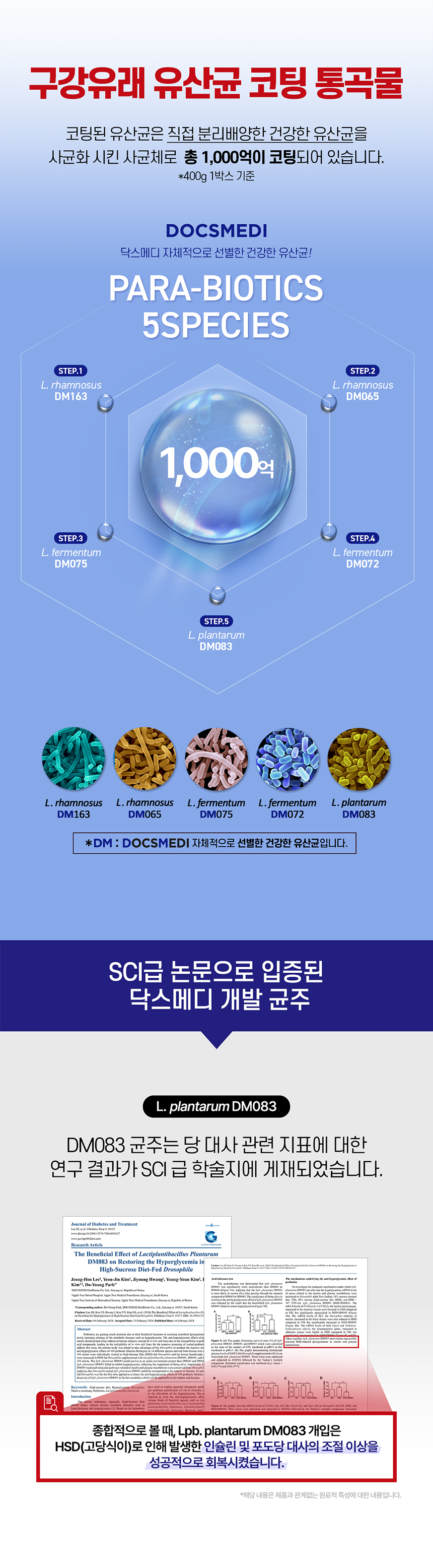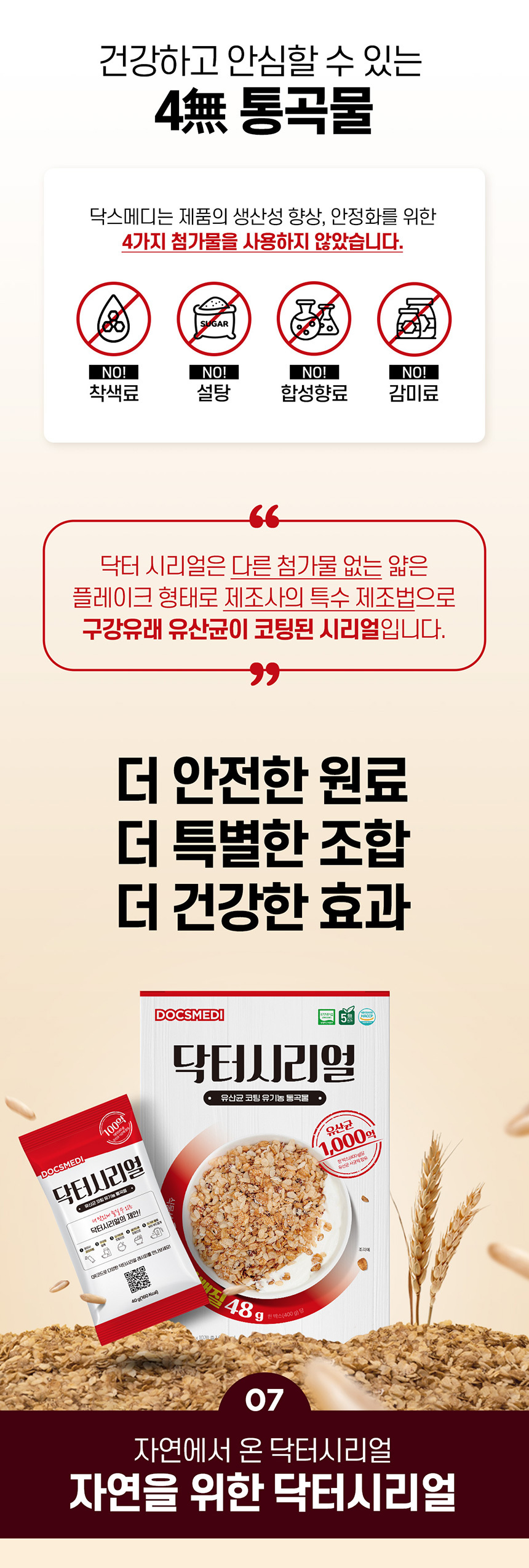 구강유래 유산균 5종을 사균화하여 분말형태로 코팅한 국내최초 유산균 통곡물 시리얼입니다.
