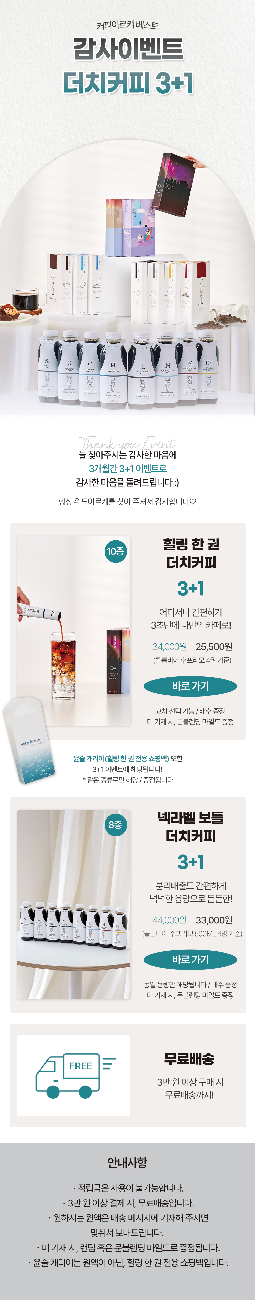 이벤트 배너가 잠시 내려간 것 같은데, 3+1 이벤트 진행이 맞으신 점 참고 부탁드립니다.