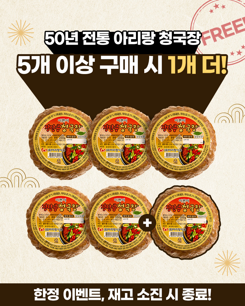 가장 중요한 원재료인 콩은 단백질 함량이 높다고 알려진 국내산 파주 장단콩만을 사용했다. 콩과 소량의 소금 이외에 어떠한 첨가물도 넣지 않았다. 심지어 청국장에 들어가는 장단콩 중 일부는 직접 재배까지 한다. 아리랑식품만의 최적의 발효 노하우로 냄새는 줄이고, 고소한 풍미는 끌어올린다.