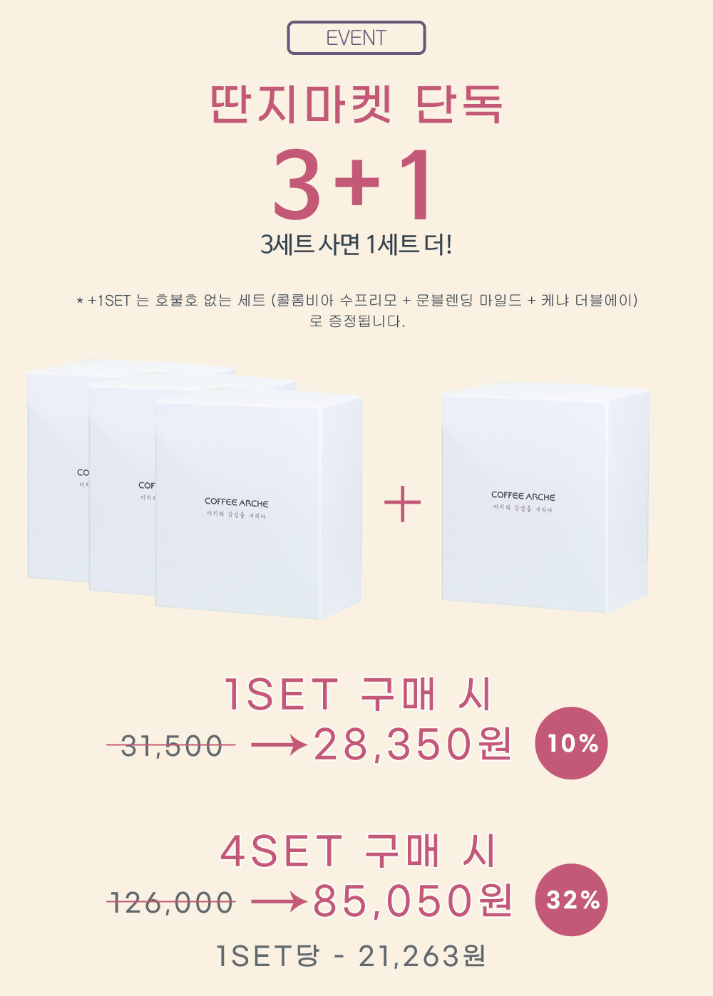 3+1의 경우 1세트 (3box)가 담겨있는 선물세트를 총 3세트 구매하시면 1set가 증정되는 이벤트 입니다.