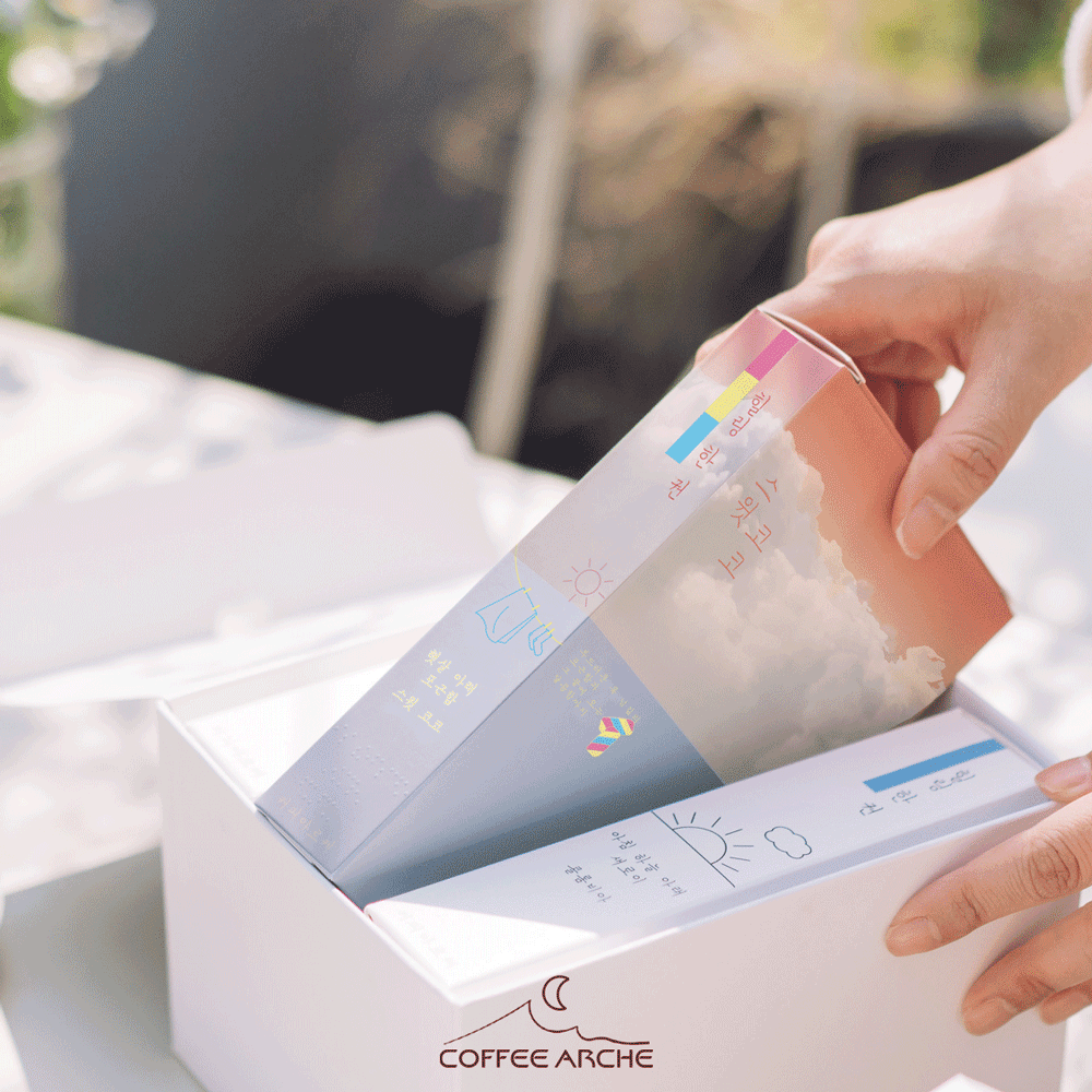 거기에 더해 감정 자극하는 디자인에 실용성이 더해진 ‘힐링 한 권 더치커피’도 좋았다. 포로 되어 있어 물에 한 포 뜯어서 넣은 다음 마시면 되는 커피로 간편하면서도 디자인이 예뻐 들고 다녀도 될 정도였다. 힐링 한 권도 종류가 많아 골라 먹는 재미가 아주 좋았고 과하지 않은 감정 문구가 좋아 꽤 신선했다.