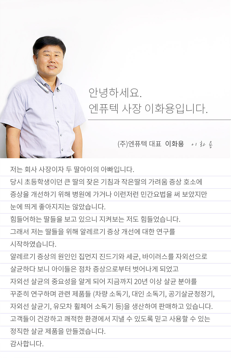 엔퓨텍은 18년 동안 이런 렌탈 업체에 자외선 살균기를 납품해온 잔뼈 굵은 회사다.