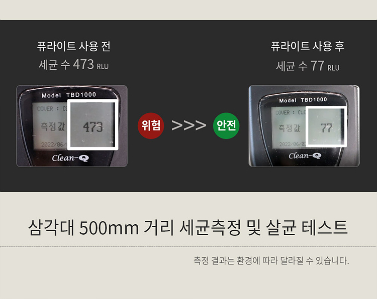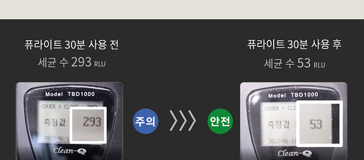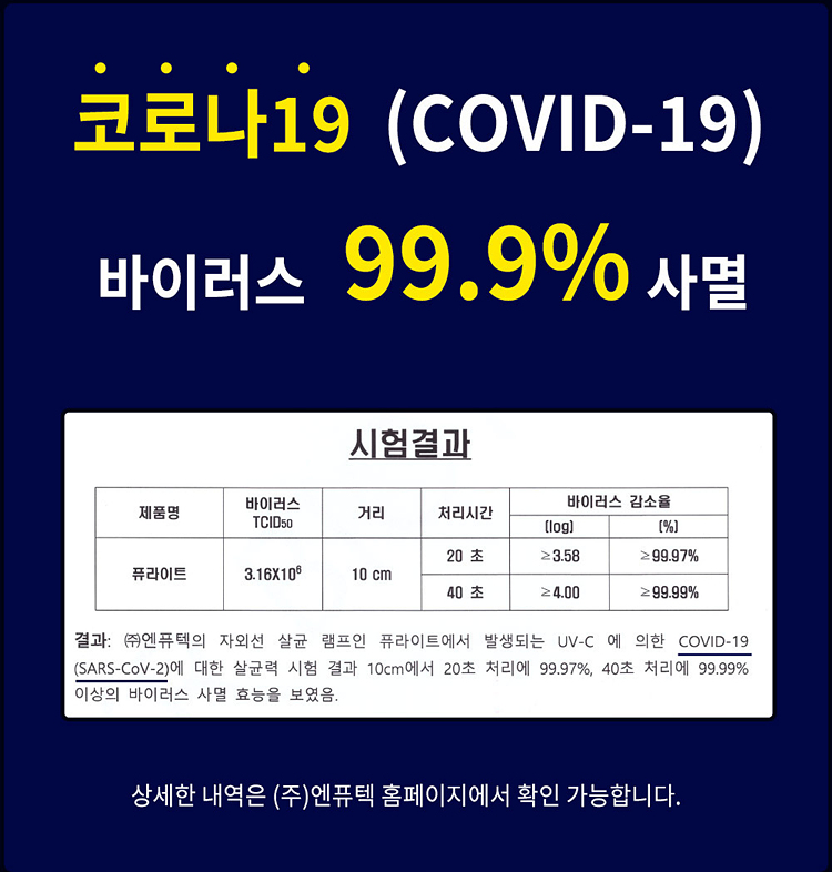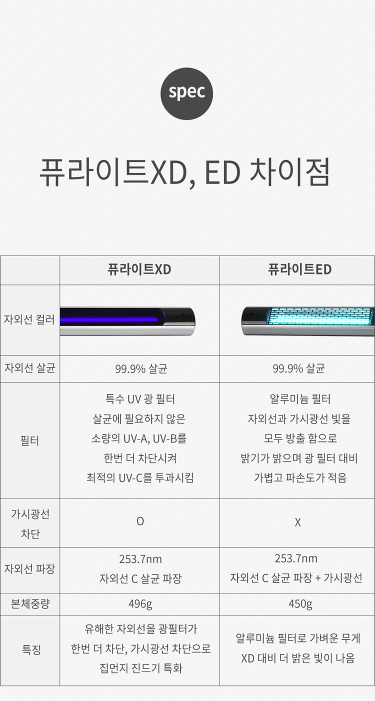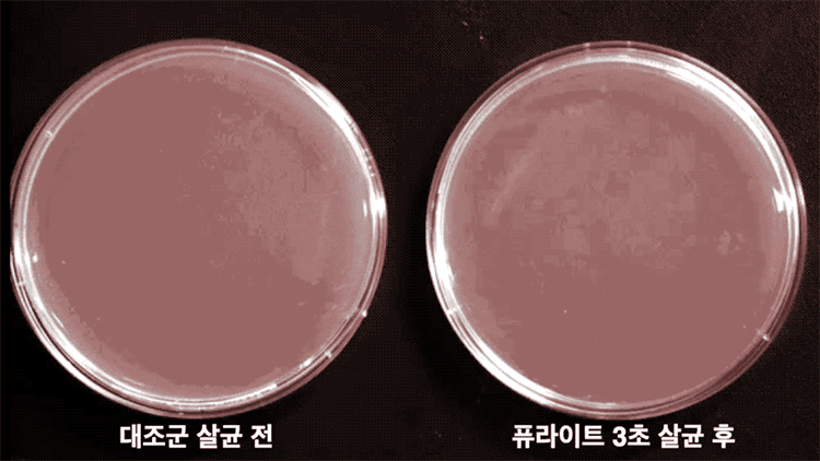 그래서 퓨라이트는 단시간에 확실하게 살균할 수 있는 UVC 램프를 채택했다.