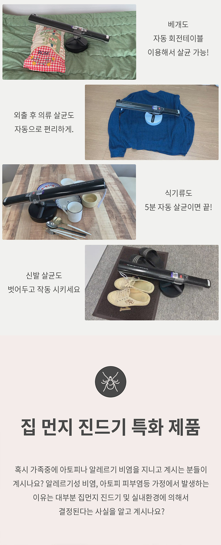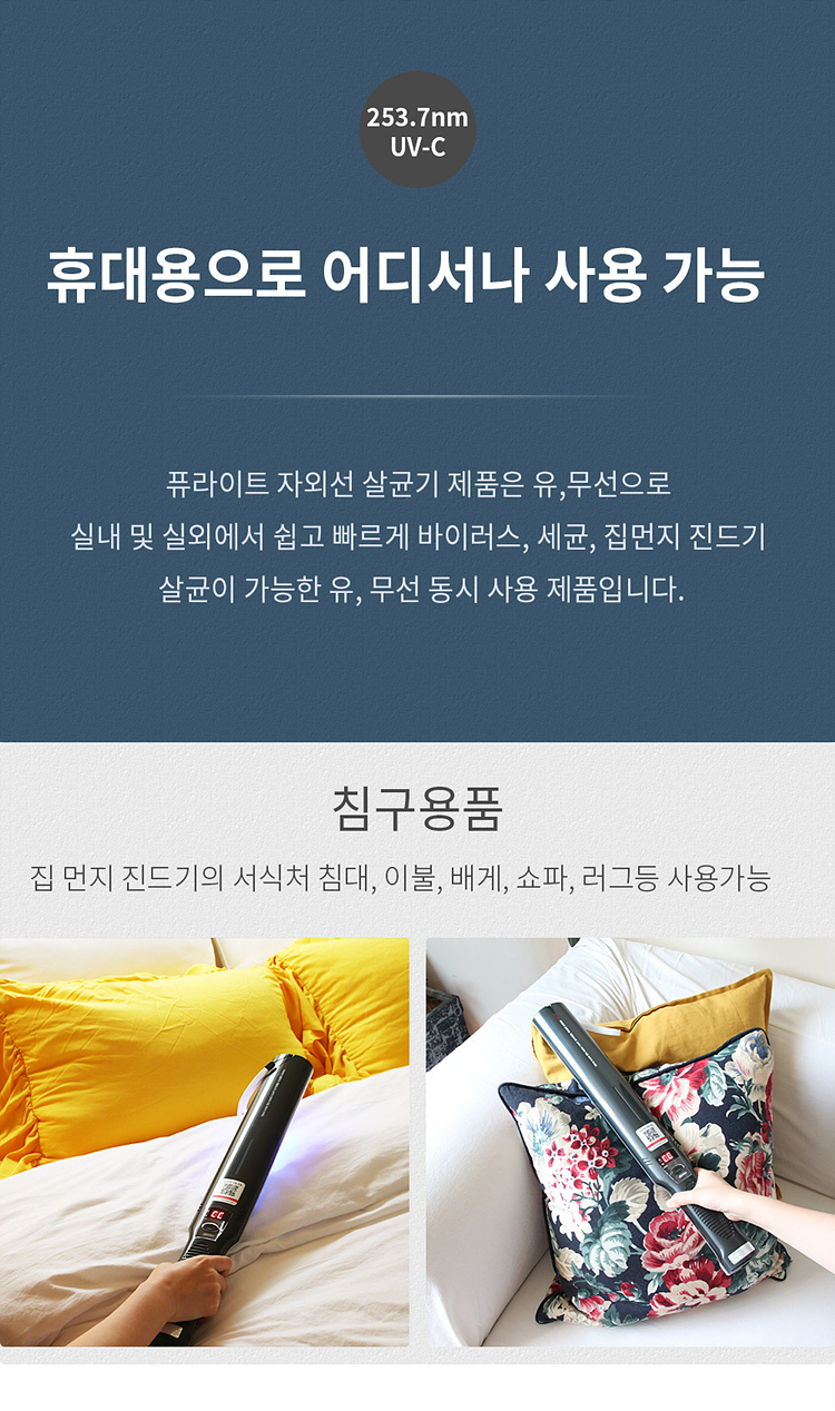 UVA에 비하면 단시간에 강력한 살균력을 가졌다지만 그래도 살균하고자하는 곳을 페인트 칠하듯 쓱쓱하는 문지르기보다 천천히 훑어주시길 권장한다. 해로운 세균들을 빈틈 없이 지져버리겠다는 느낌으로.