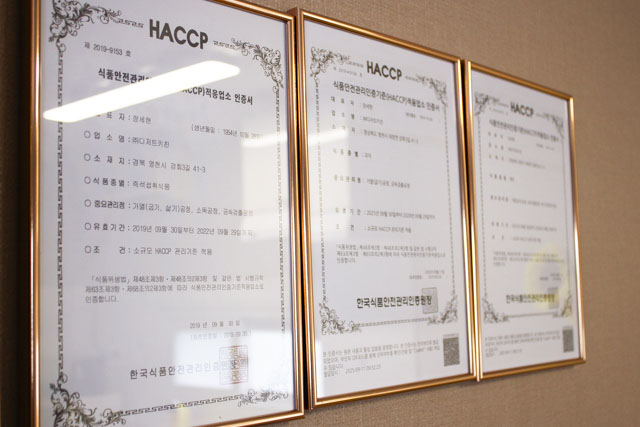공장의 규모는 그리 크지 않지만 해썹 인증까지 받은 만큼 입장 전 위생복 착용을 철저히 했다.