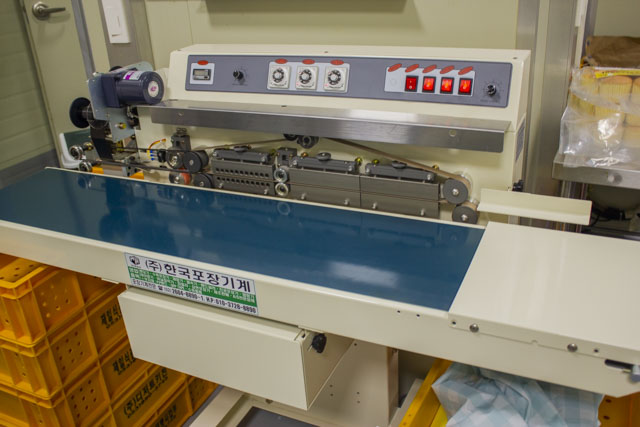 2층으로 이동해 외형에 문제가 없는지 확인하고 부수적인 가루들을 털어주는 등의 검수과정을 거친 후 기계를 이용해 포장까지 완료한다.