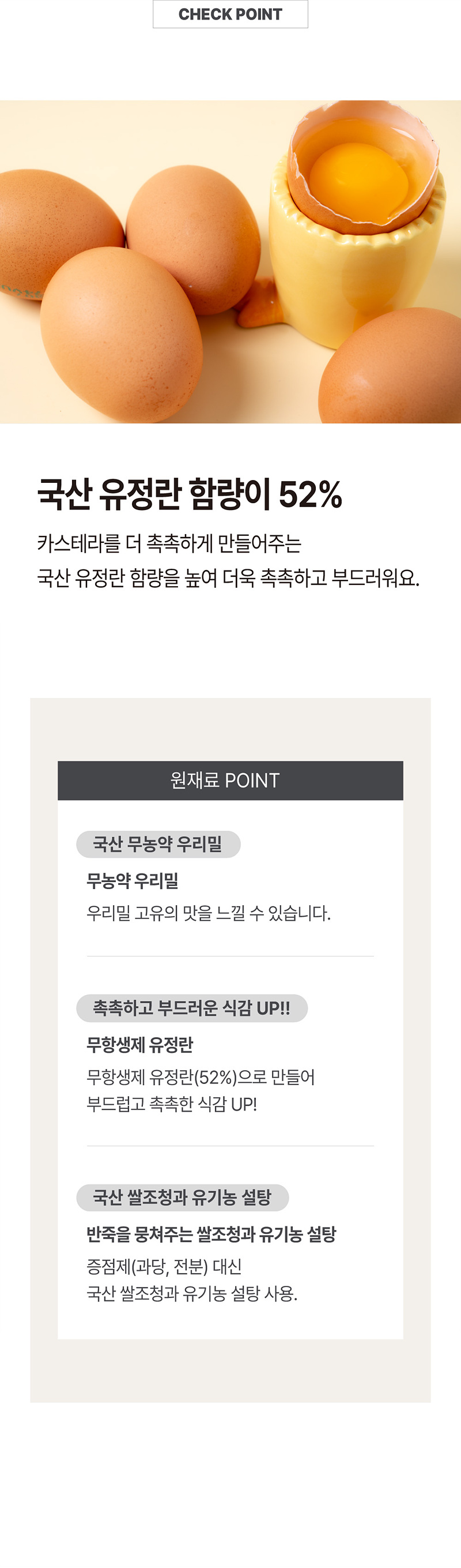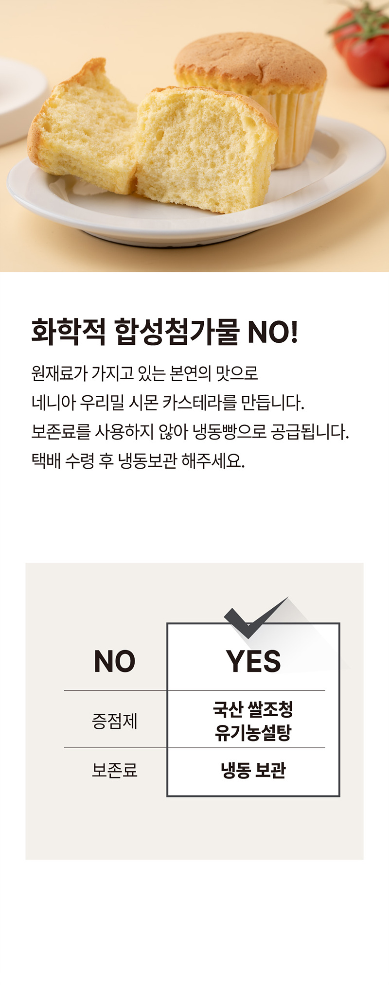 소개해 드리는 신규 베이커리류는 국내산 우리 밀로 만들었고, 글루텐을 추가로 넣지 않았고, 합성 첨가물을 이용하지 않았으며, 달걀은 무항생제 달걀을 썼습니다. 그래서 시몬 카스테라 같은 경우 코를 가까이 대고 향을 맡으면 깊이가 남다릅니다
