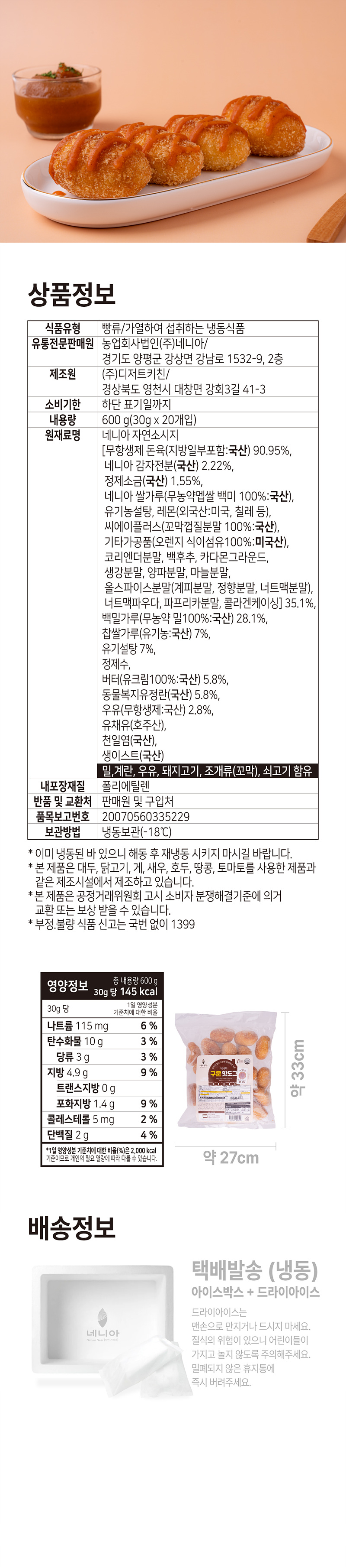 냉동식품이라 출고후 단순 변심으로 인한 반품 교환 환불은 불가함을 양해부탁드립니다.