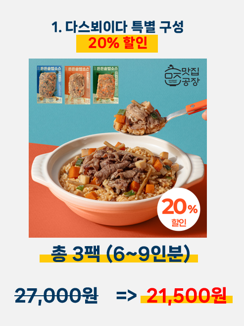 | 제품설명 | 지친 일상을 채워 줄 간편한 한끼 맛집공장 든든솥밥소스 | |