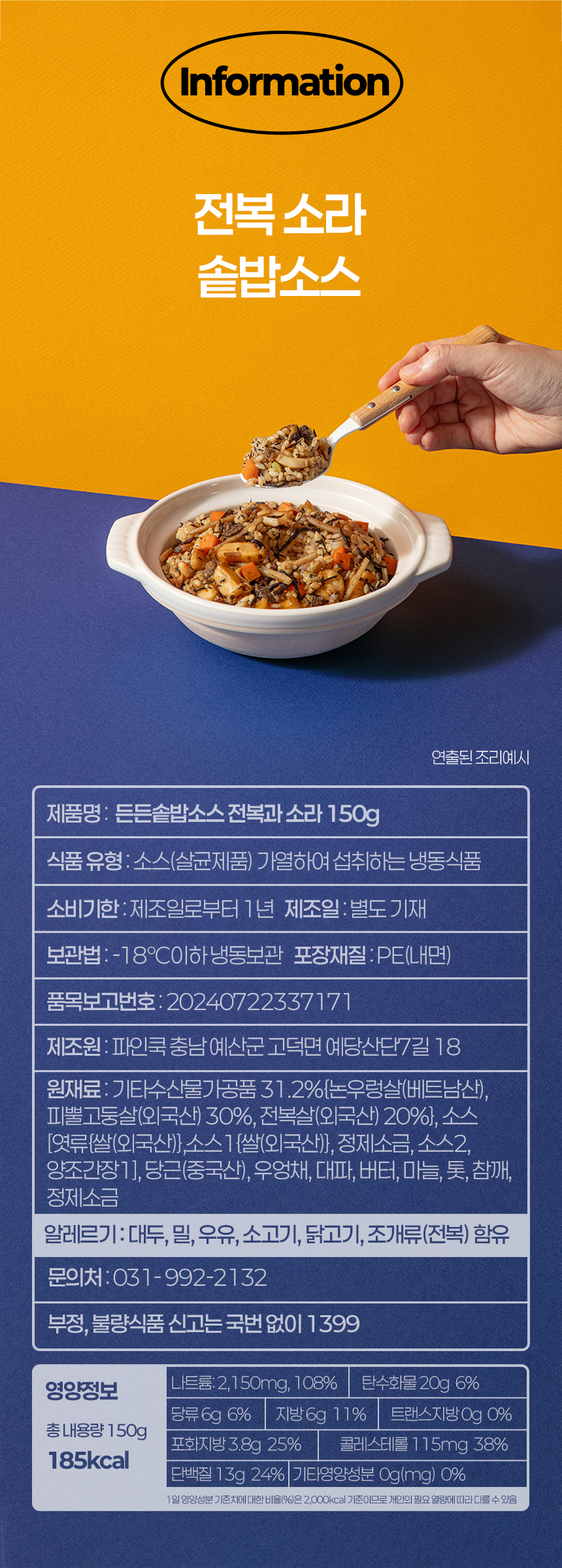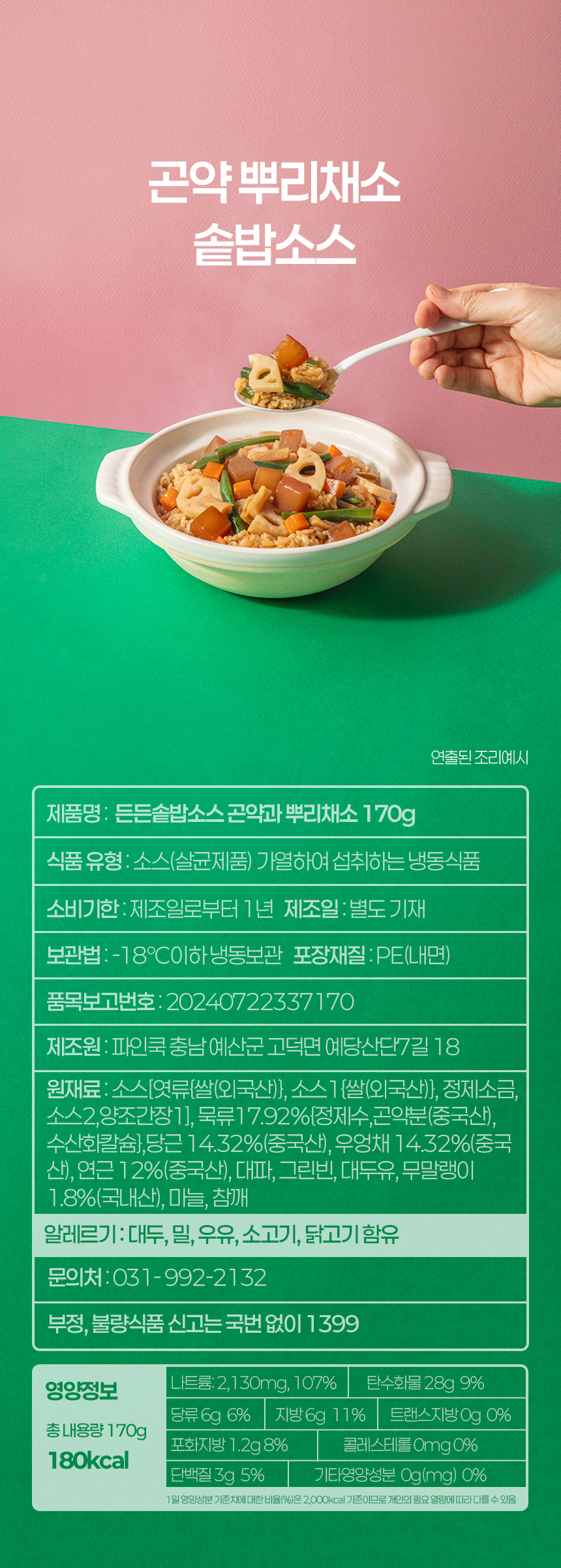 맛집공장 든든솥밥 소스는 충남 예산에 위치한 파인쿡에서 생산이 진행되고 있다.