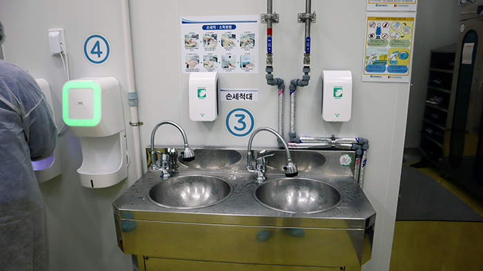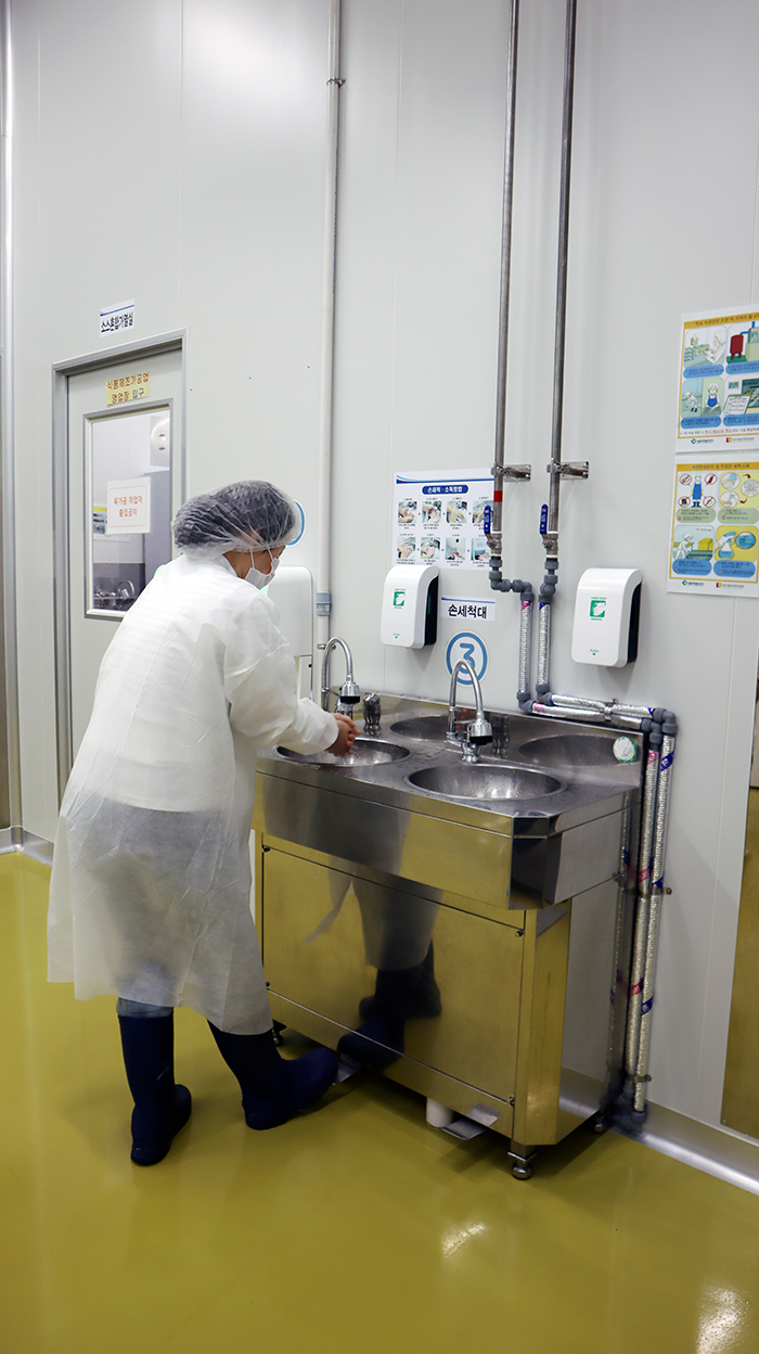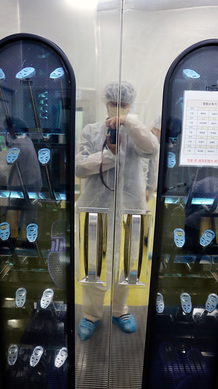 제품에 대한 간단한 설명을 듣고, 생산 시설 검증을 위한 침투 복장으로 환복