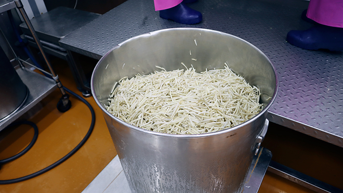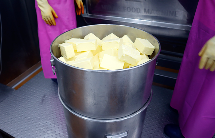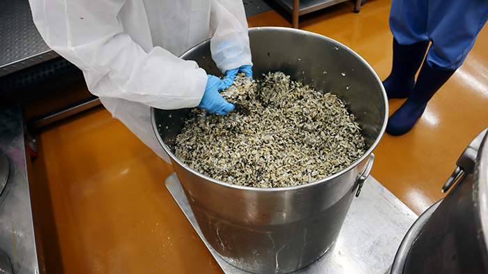 건더기의 손상을 최소화하기 위해 커다란 스테인리스 삽을 쓰지 않고 손바닥만 한 주걱으로 작업을 하는 모습이 인상 깊다.