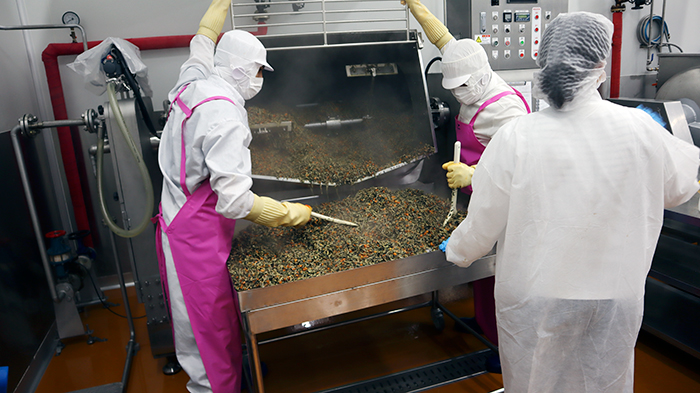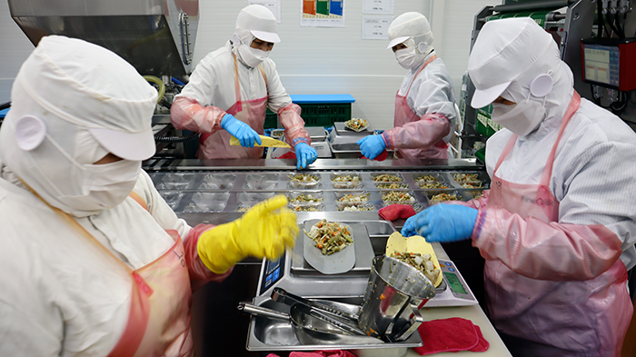 이날 생산되는 제품은 맛집공장 든든솥밥소스 상품 중 하나인 "전복과 소라" 제품으로 생산 공정을 검증 진행