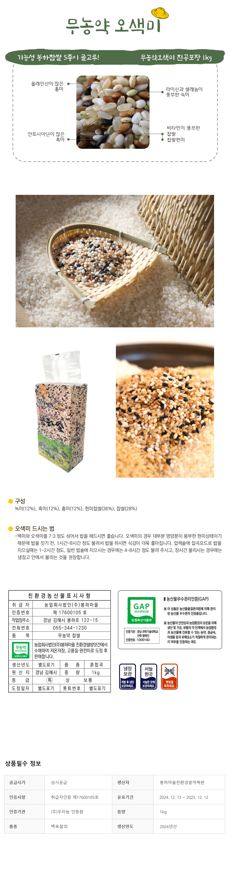 제품설명 친환경 무농약으로 생산한 봉하마을 농산물