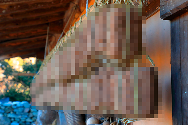 그 뒤에 하나하나 볏짚으로 묶어 비닐하우스 안에서 40일 정도를 말린다.