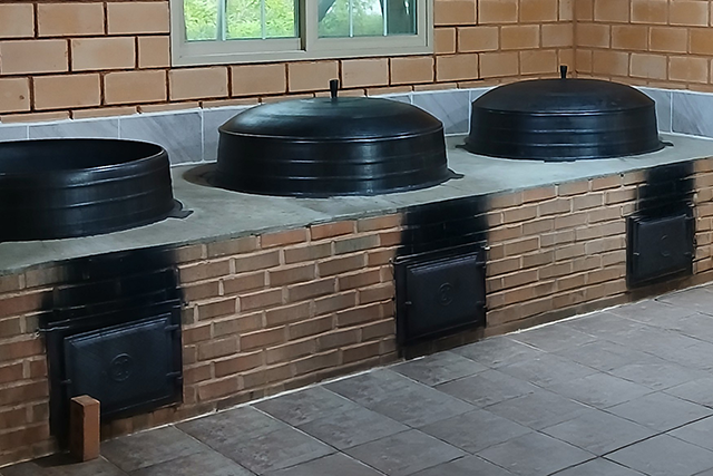 차를 마실 수 있는 테이블 옆에는 콩을 삶는 용도의 아궁이를 볼 수 있다.