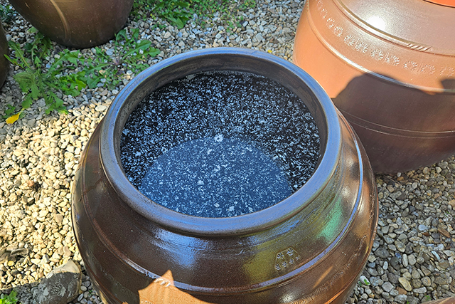 메주와 같이 넣은 소금물은 시간이 지나면서 색이 변하는데 이를 메주를 뺀 후 따로 걸러주면 간장이 된다.