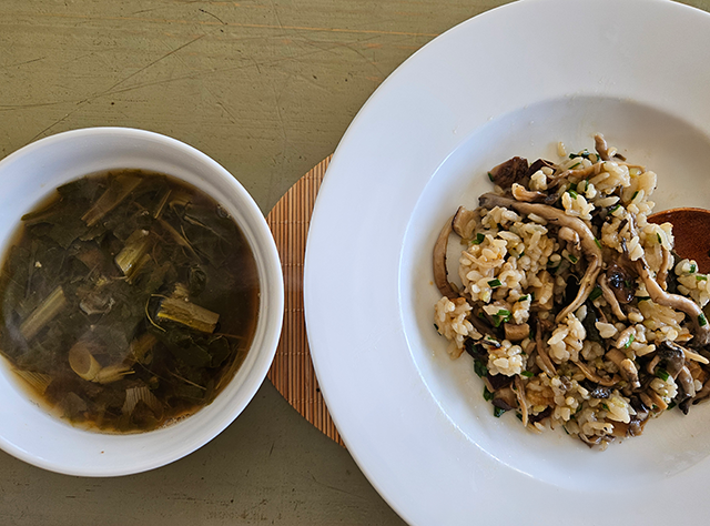 오전부터 진행한 취재가 오후까지 이어지면서 대표님이 직접 식사를 준비해 주셨다. 메뉴는 직접 만드신 청국장 콩을 올린 샐러드와 버섯밥, 그리고 서풍골 된장으로 만든 된장국.