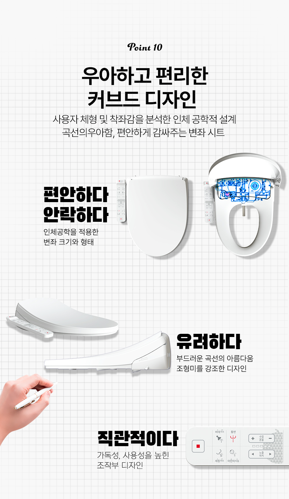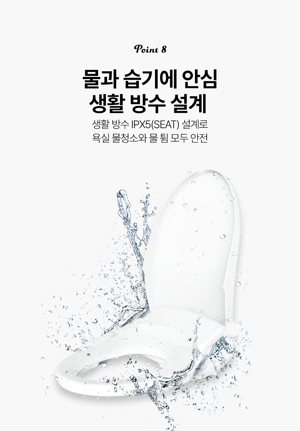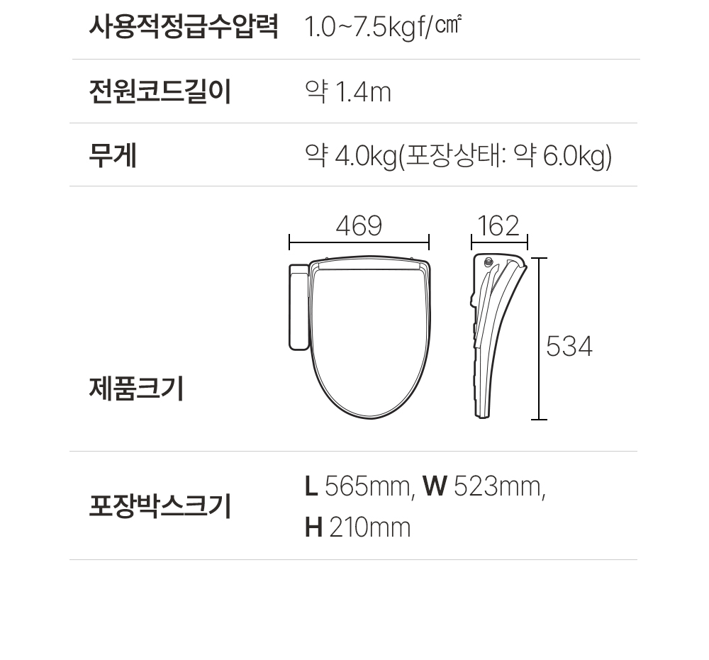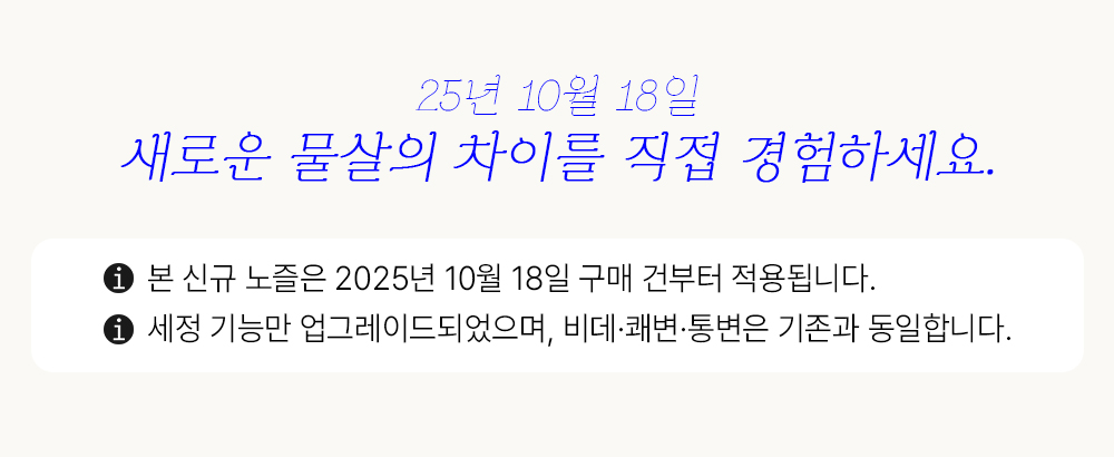 | 제품설명 | 변좌 사이즈와 방수력 업, 연속온수시스템. 묵직한 물살이 속까지 들어가는 통변비데 | |