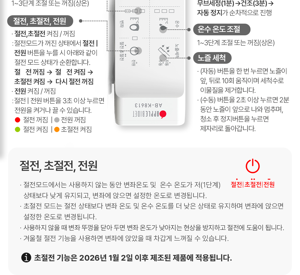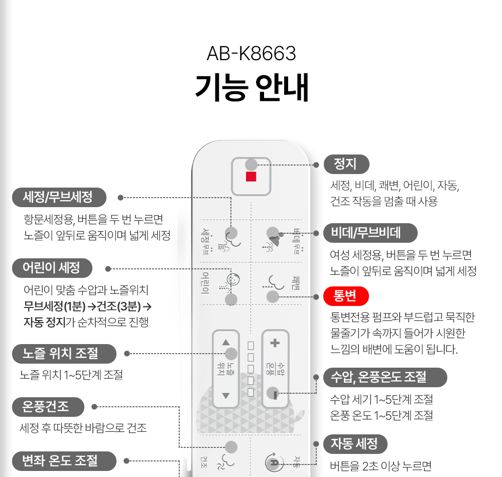 | 추천대상 | 기존의 애플비데의 변좌 사이즈가 조금 작다 느끼신 분, 통변 기능이 필요한 분 | |