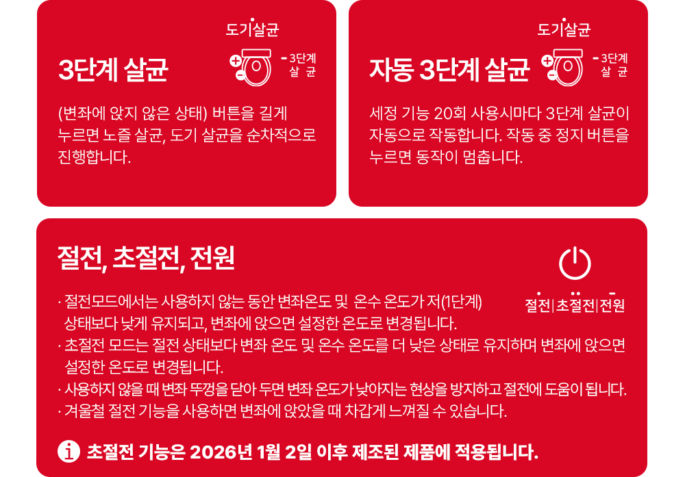 조작 패널도 방수등급 IPX7을 유지하고, LED 조명으로 어두운 화장실에서도 변기가 잘 보이게 하는 등 기존 제품들의 장점 또한 그대로 계승했다.