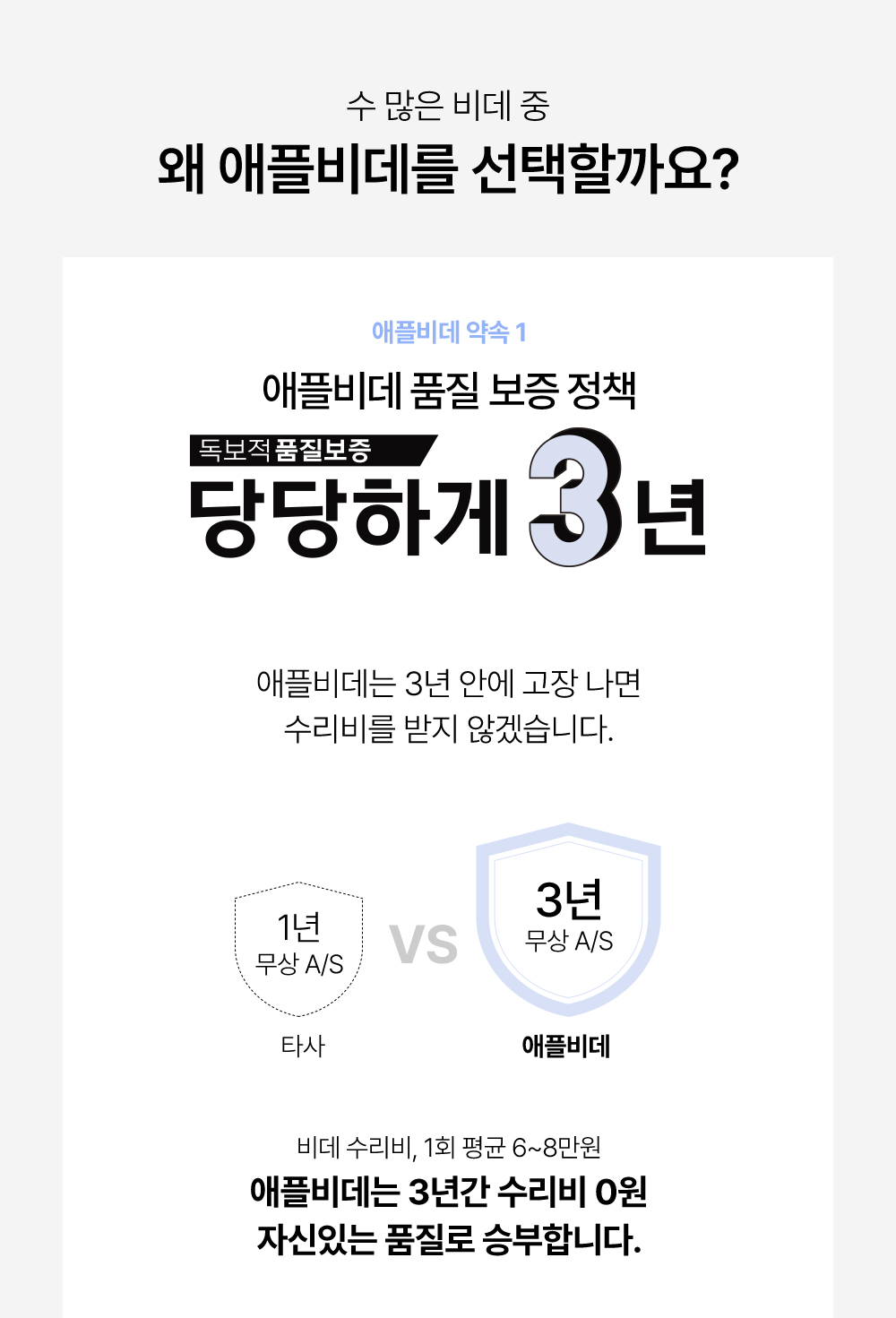 이러한 올케어 살균비데의 특징들이 애플비데의 배송-설치, A/S 등 높은 수준의 서비스와 맞물려 최선의 고객 경험을 만들 수 있기를 기대해본다.