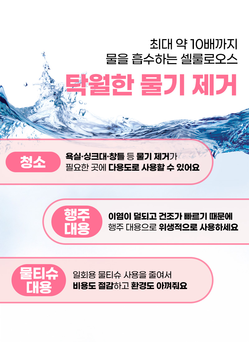 크기가 좀 작기는 하지만 액체를 닦고 다시 닦기 위해 온몸의 힘을 이용해 머금은 물을 짜내야 하는 행주와 비교하면 훨씬 편하다.