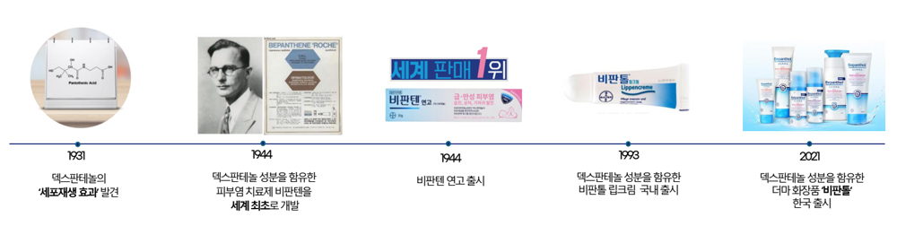 비판톨의 핵심 성분인 덱스판테놀 역시 1931년 그 작용이 밝혀진 이후, 1944년 피부염 치료제 비판텐을 세계 최초로 개발되어 사용되어 온 성분이다.