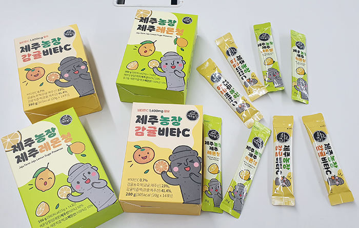 | 제품설명 | 부드럽고 탱글한 식감의 감귤 비타C 젤리스틱과 제대로 만든 제주농장 레몬청 | |