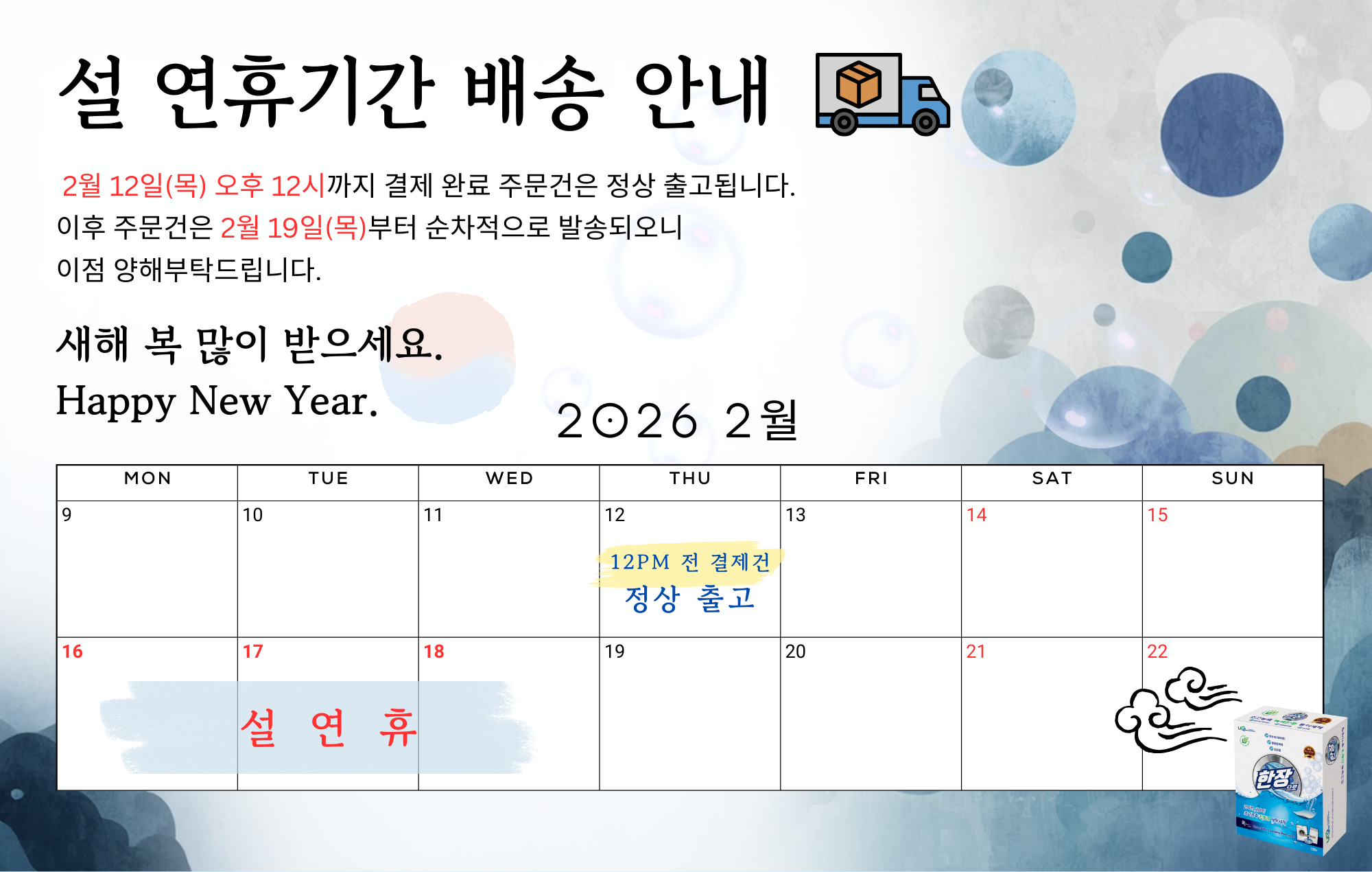 설날 후 도착예정입니다.